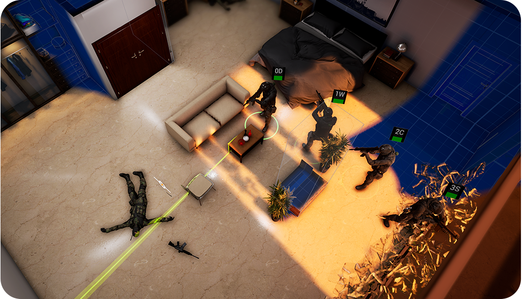 It's a top-down tactical shooter with squad management and permadeath focusing on real-time action and strategy.